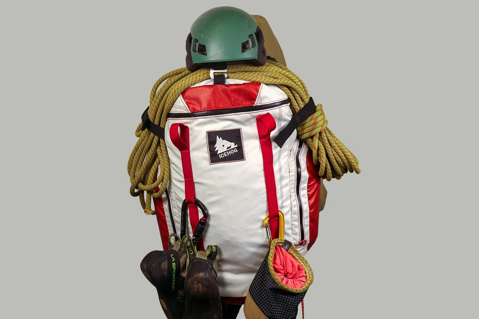 Designed using digital pattern drafting technologies, the ICE HOG is the ideal pack for a day of rock climbing. Its simple, comfortable and rugged design makes it a perfect companion for climbing adventures. The pack is made entirely from upcycled car airbags.
