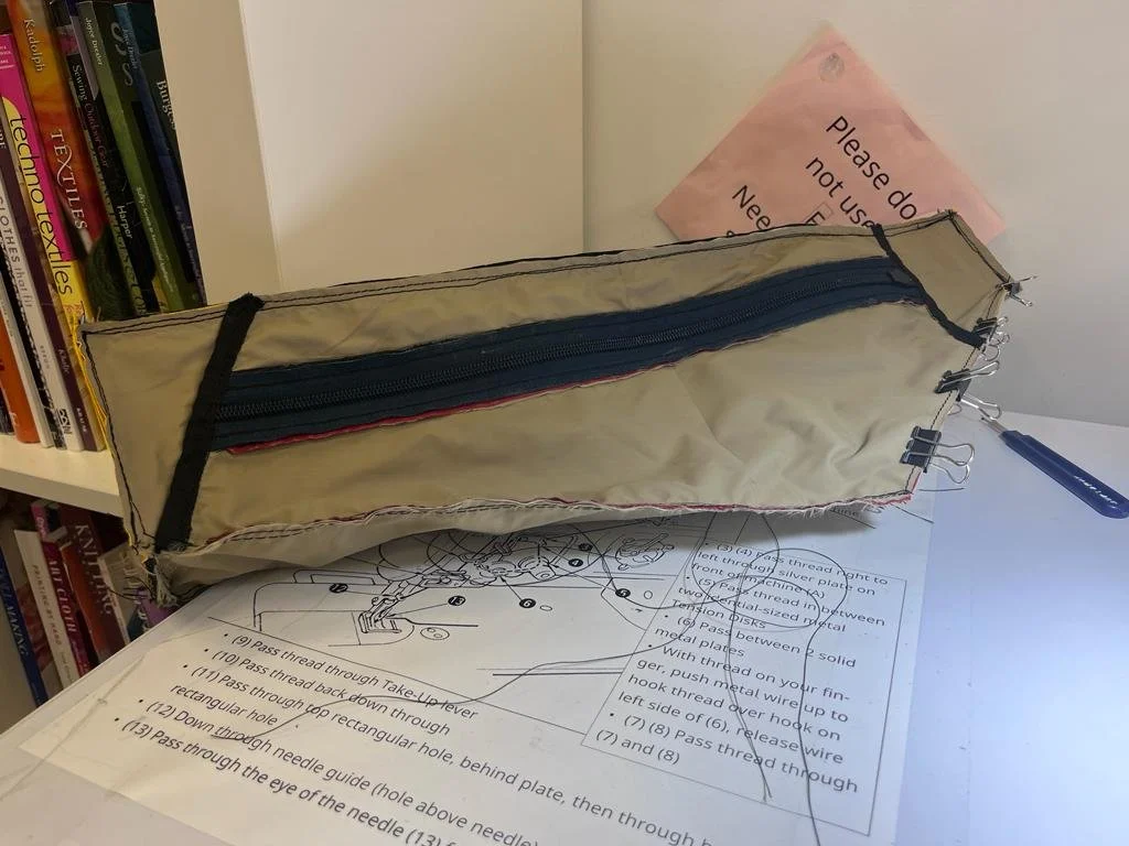 For the final prototype, I began with an in depth research into durable and waterproof materials. since Vancouver is notorious for its constant rain, I wanted to make sure I would create a reliable pack that would protect my valuables from the elements. The final material choice consisted of waterproof zippers, scrap GORE-TEX fabric, Yellow Inflatable kayak lining for durability, a strong Teflon coated black fabric and finally a nylon ripstop lining on the interior of the back to protect your items even further.
