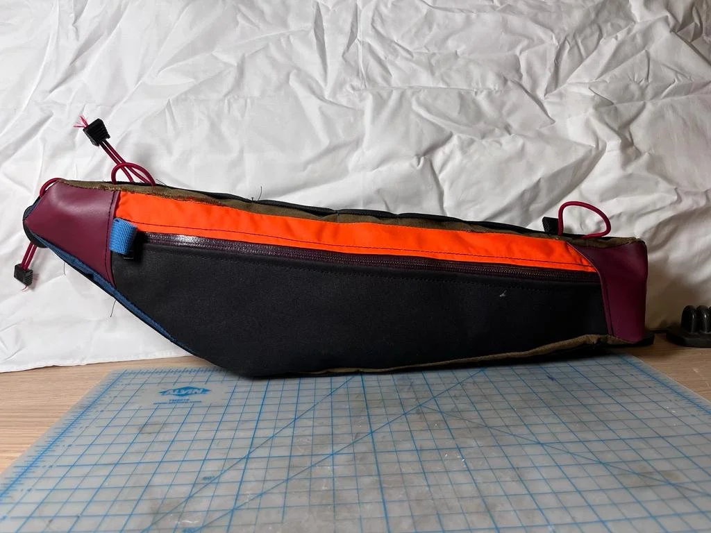The pack first began with a 3D model in order to extract the patterns that will later be used for sewing. This first iteration focused on the form and function of the pack while not worrying as much about the materials. This showed me failure points and impracticalities in the design that I was later able to improve on for the second iteration
