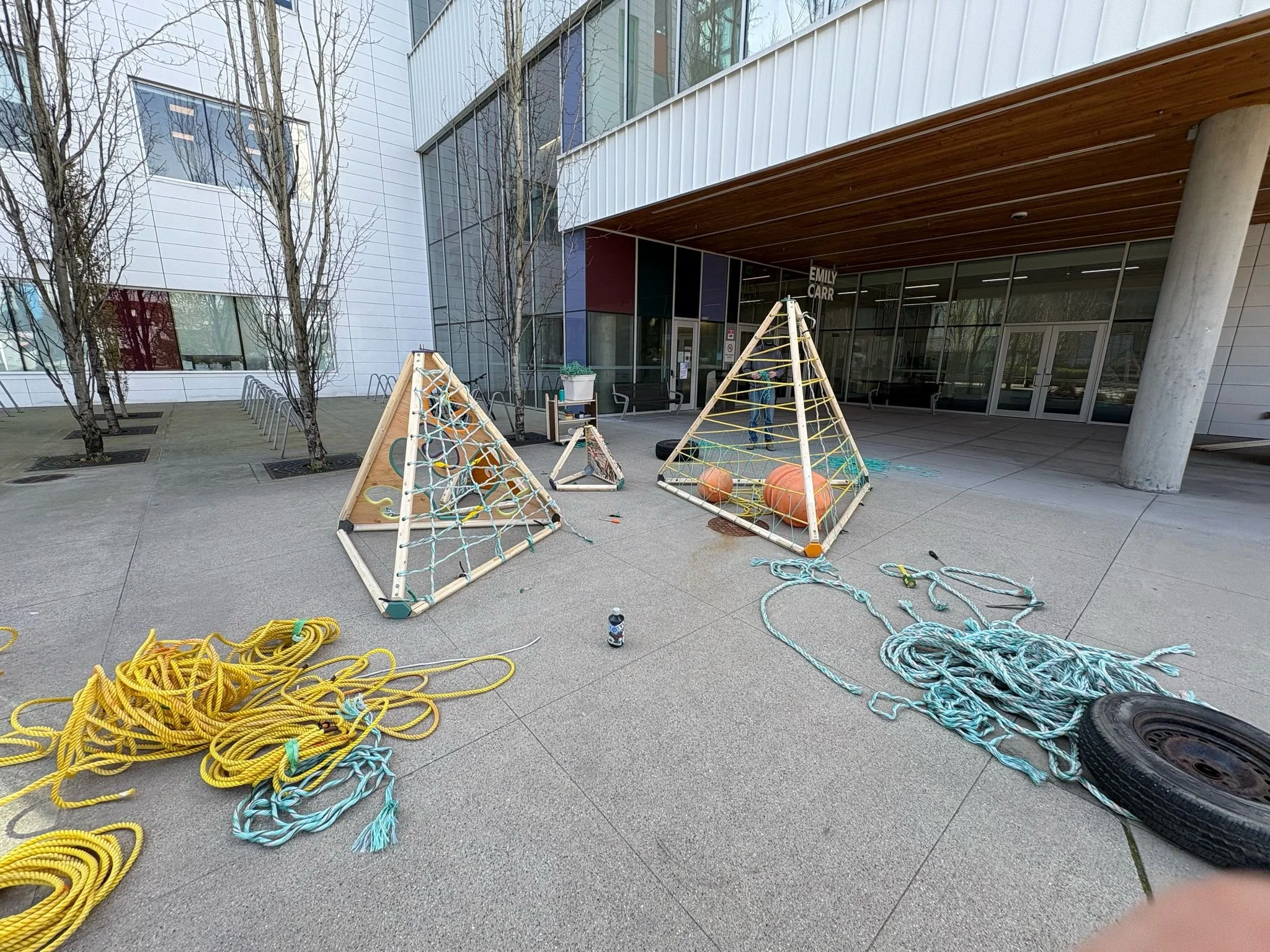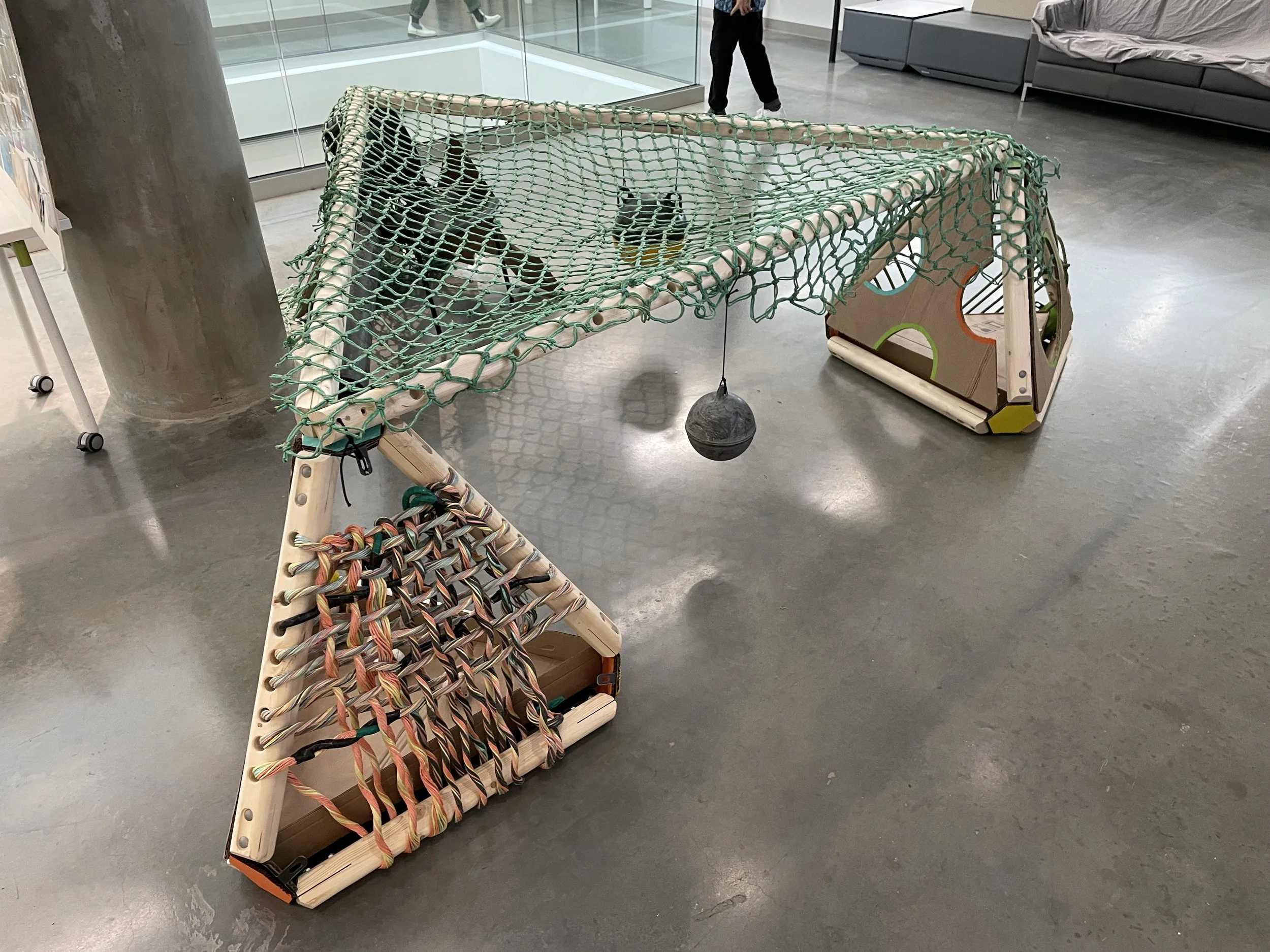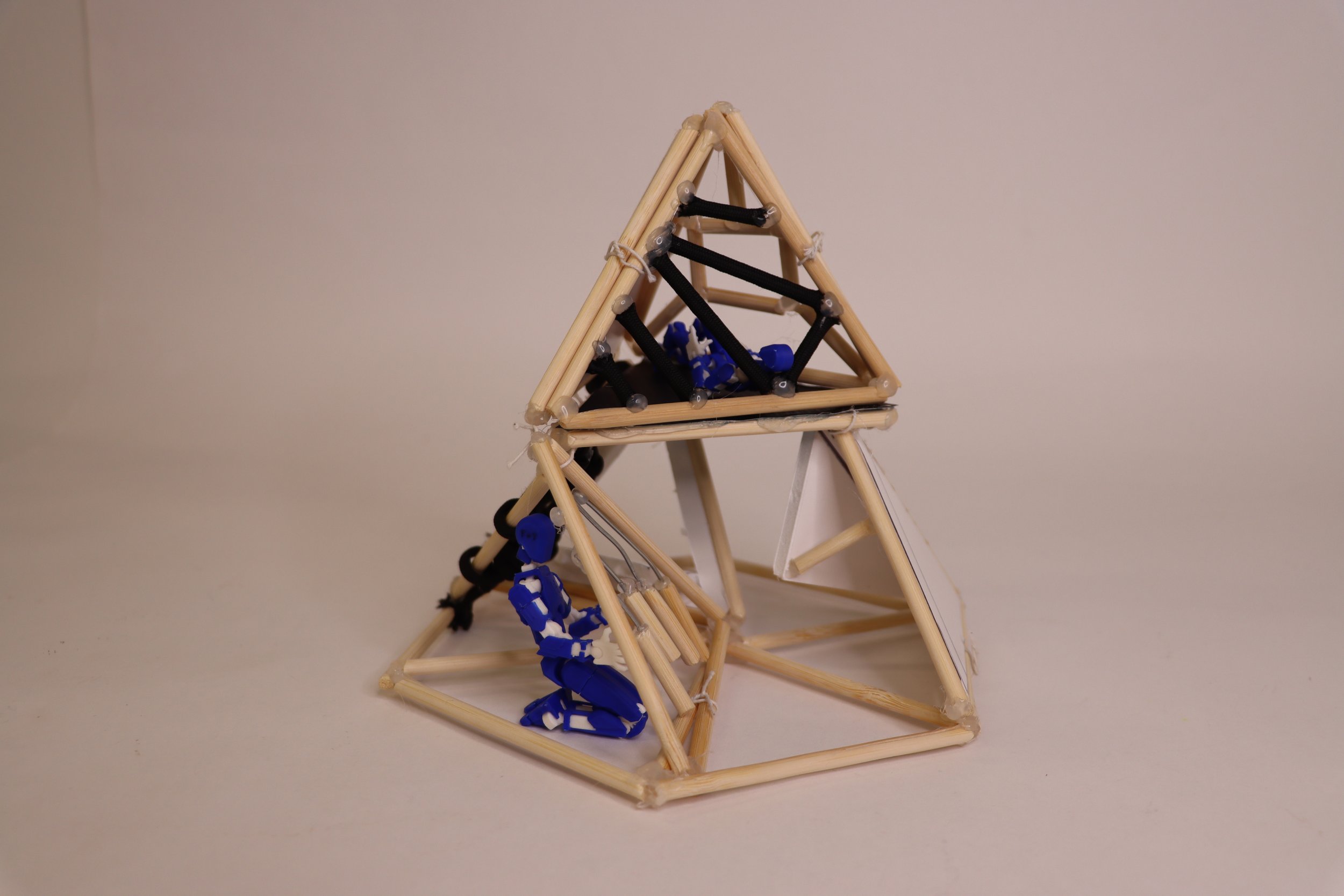 Tetra is a flexible system designed to adapt to different spaces and encourage creative reuse. built from simple, modular parts, It invites users to customize using found or waste materials. this prototype features reclaimed ocean plastic from the ocean legacy, showcasing one possible version of the structure.